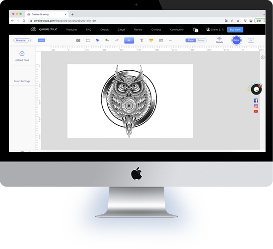 Your gweike cloud runs from a web browser, which means there’s no software to install - ever. Drag and drop your designs right onto your material. Upgrades are instant and seamless.Friendly for beginners, simple and convenient, provides free download gallery.
