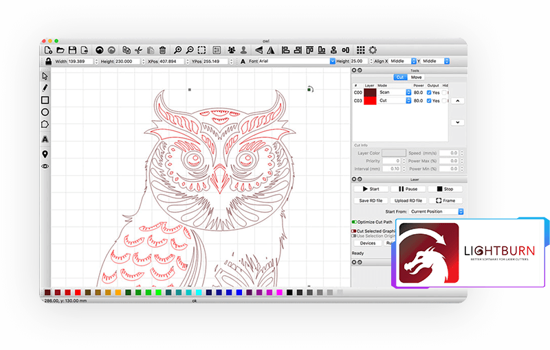 - Apply settings like power, speed, number of passes, cut order, brightness & contrast, dithering mode, and much moreSend the result directly to your laser cutter LightBurn is a native application written for Windows, Mac OS, and Linux.