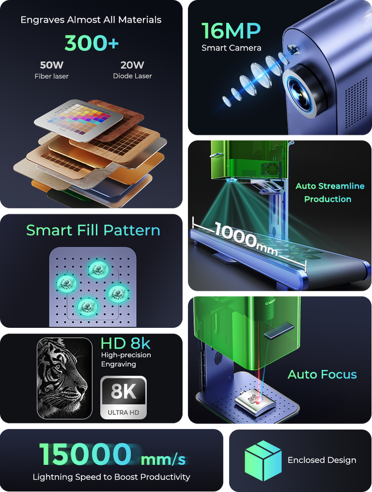 World’s 1st 50W Fiber & 20W Diode Dual Laser Engraver
