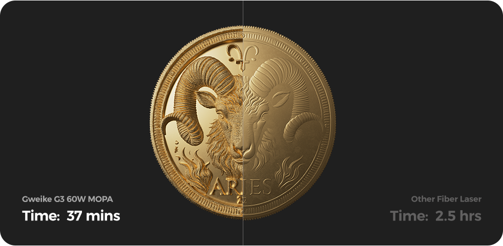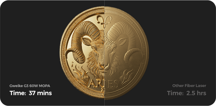 At 100% power, the GWEIKE G3's 60W MOPA laser outperforms 20W fiber lasers — delivering 3x the speed and 200% finer detail.